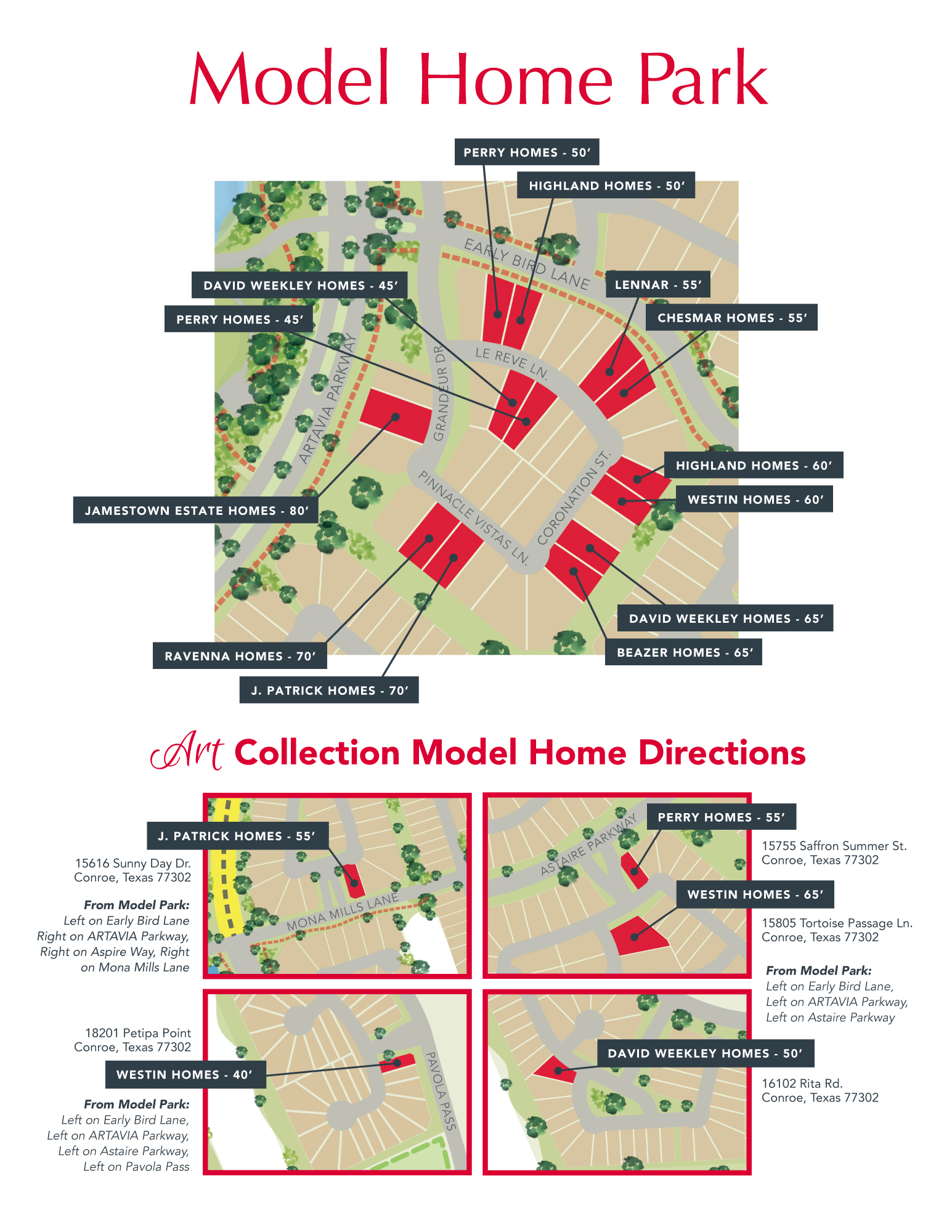Travel east on SH 242 for seven miles. The entrance to ARTAVIA is on the south side.